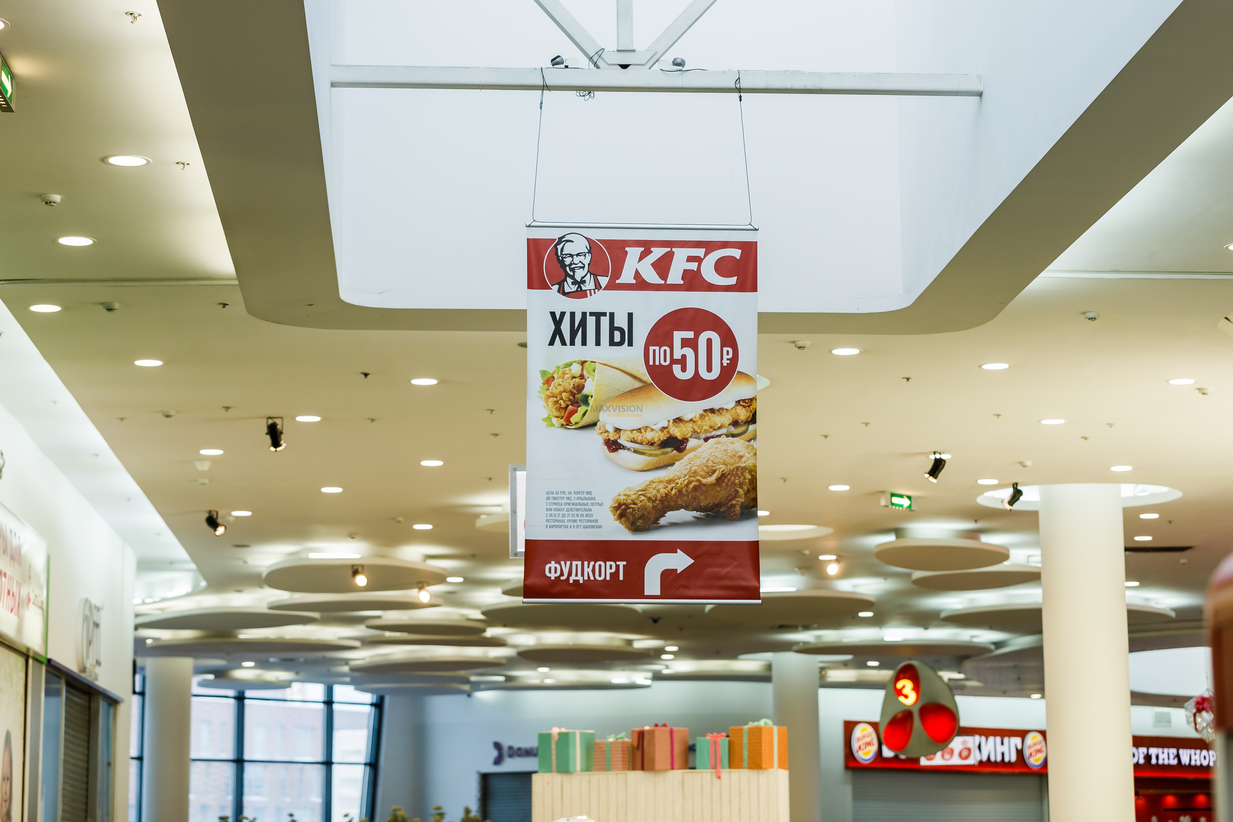 Размещение подвесных рекламных конструкций в Торговых центрах Москвы