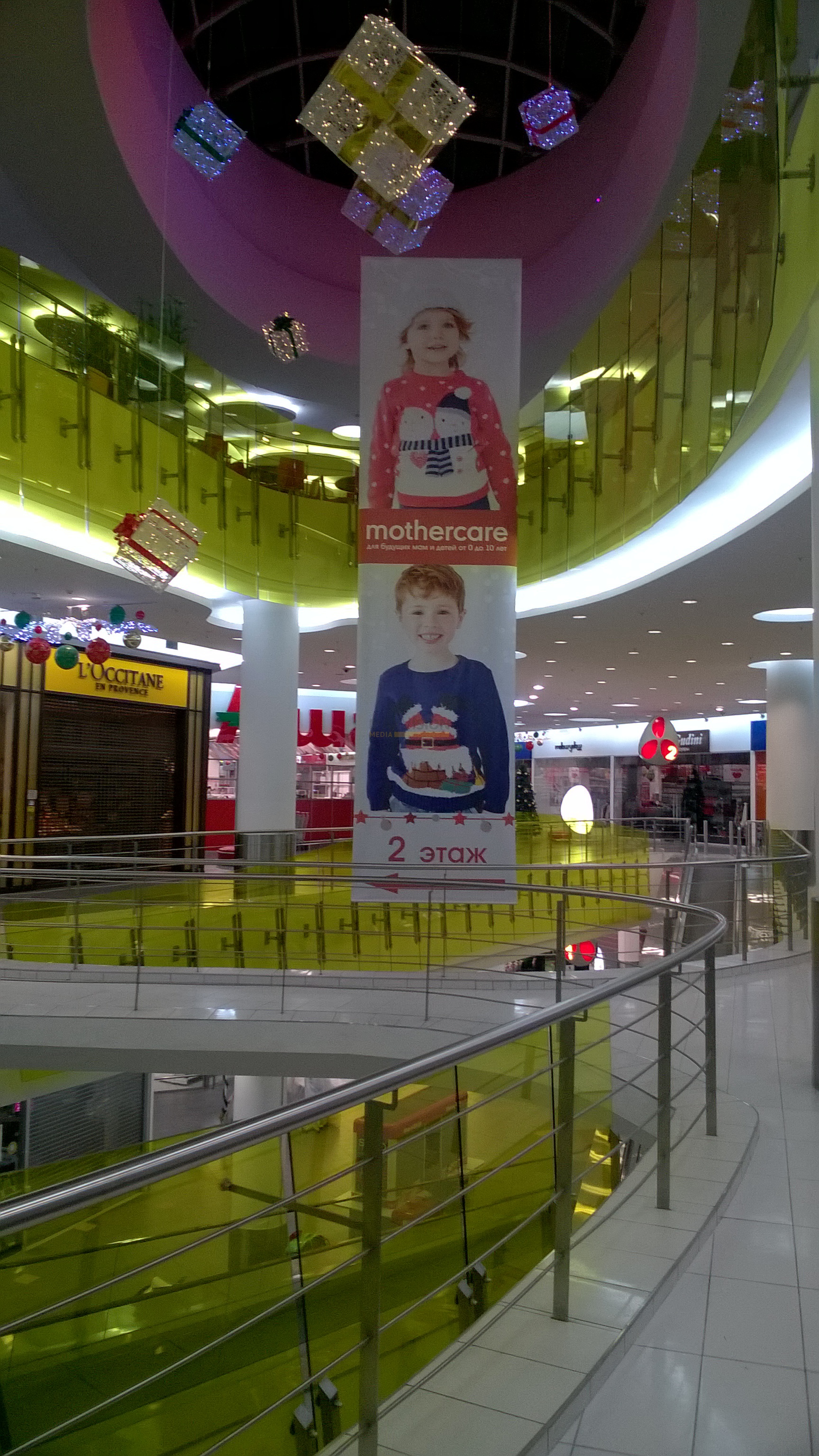 Данные формат рекламы очень популярен, так как имеет большую площадь для рекламы и эффектно виден с дальнего расстояния. Обычно размещают в атриумах ТЦ либо, если не большого формата, то в галареях.