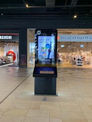 - Для начала необходимо приобрести видео-стенд, который будет наделен необходимыми характеристиками и нужного размера. Далее договариваетесь с арендодателем и запускаете трансляцию своей рекламы. Размещать видеостойки лучше на больших торговых площадках и в общественных местах с большой проходимостью людей. Например, это могут быть торгово-развлекательные центры, кинотеатры, бизнес-центры и прочие общественные места, которые ежедневно посещают много людей.