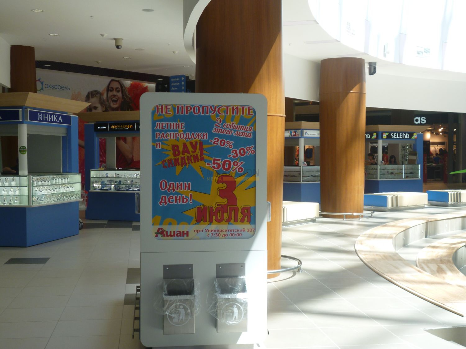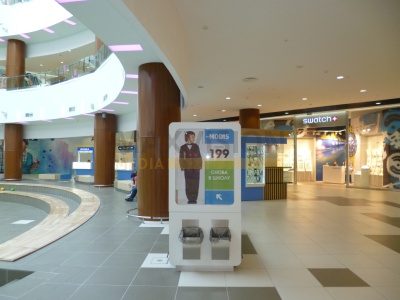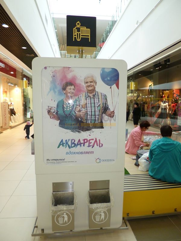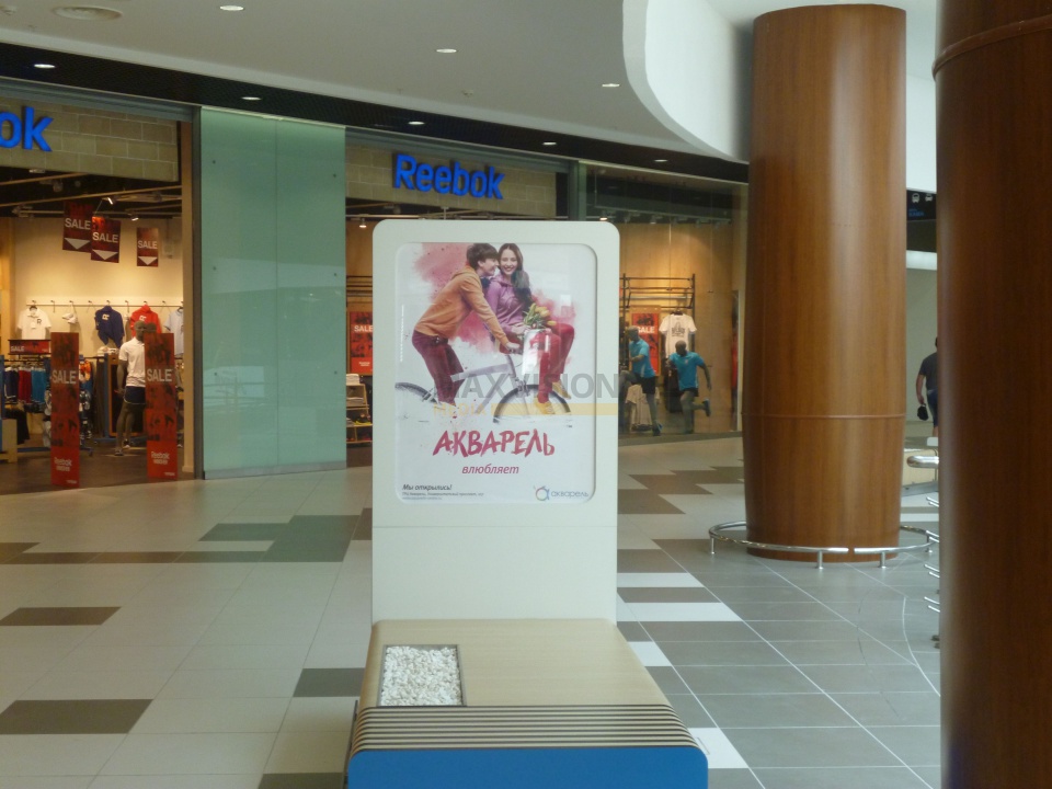 Довольно часто рекламу в торговых центрах также размещают на сити форматах. Подобные рекламные конструкции можно встретить возле супермаркетов и автозаправок. Рекламодатели предпочитают размещать рекламу на пунктах АЗС, поскольку водитель и его пассажиры пребывают в более длительном контакте с рекламной информацией, чего не скажешь о щитах, расположенных вдоль дорог и трасс. Ко всему прочему количество контактов с рекламной информацией достаточно велико, поскольку каждый водитель посещает заправку два, а то и больше, раз в течение недели.