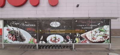 - Лайтбоксы на фасаде. Короб с натянутым по периметру баннерным полотном, обычно имеет внутреннюю светодиодную подстветку.