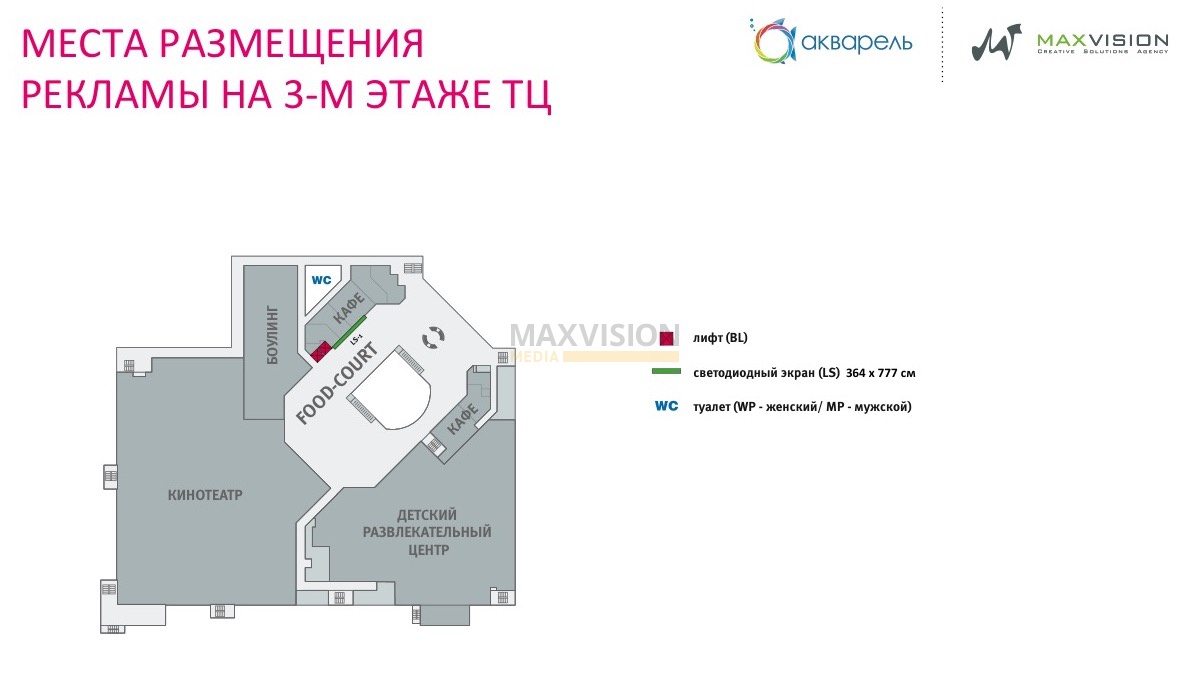 Желаете разместить рекламную информацию на видеостенах? Тогда обращайтесь в компанию MaxVision Media™. Наша компания специализируется на эксклюзивной продаже рекламных возможностях в ТРЦ. Цены на услуги нашей компании доступны для любого клиента. Звоните нашим консультантам прямо сейчас и заказывайте размещении рекламы в Торговых центрах, расположенных на территории РФ.
